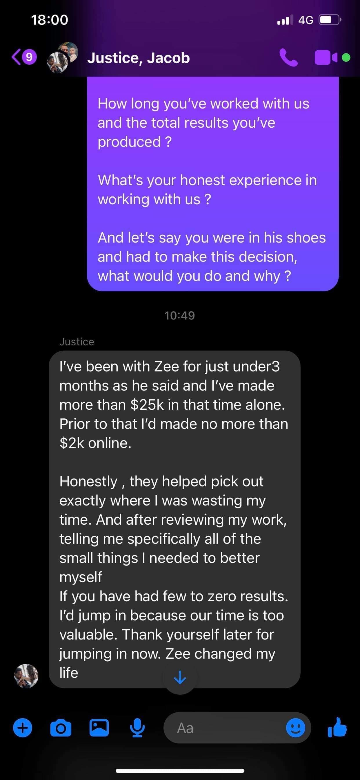 Justice joined a high ticket affiliate program and was struggling to get consistent leads and sales.